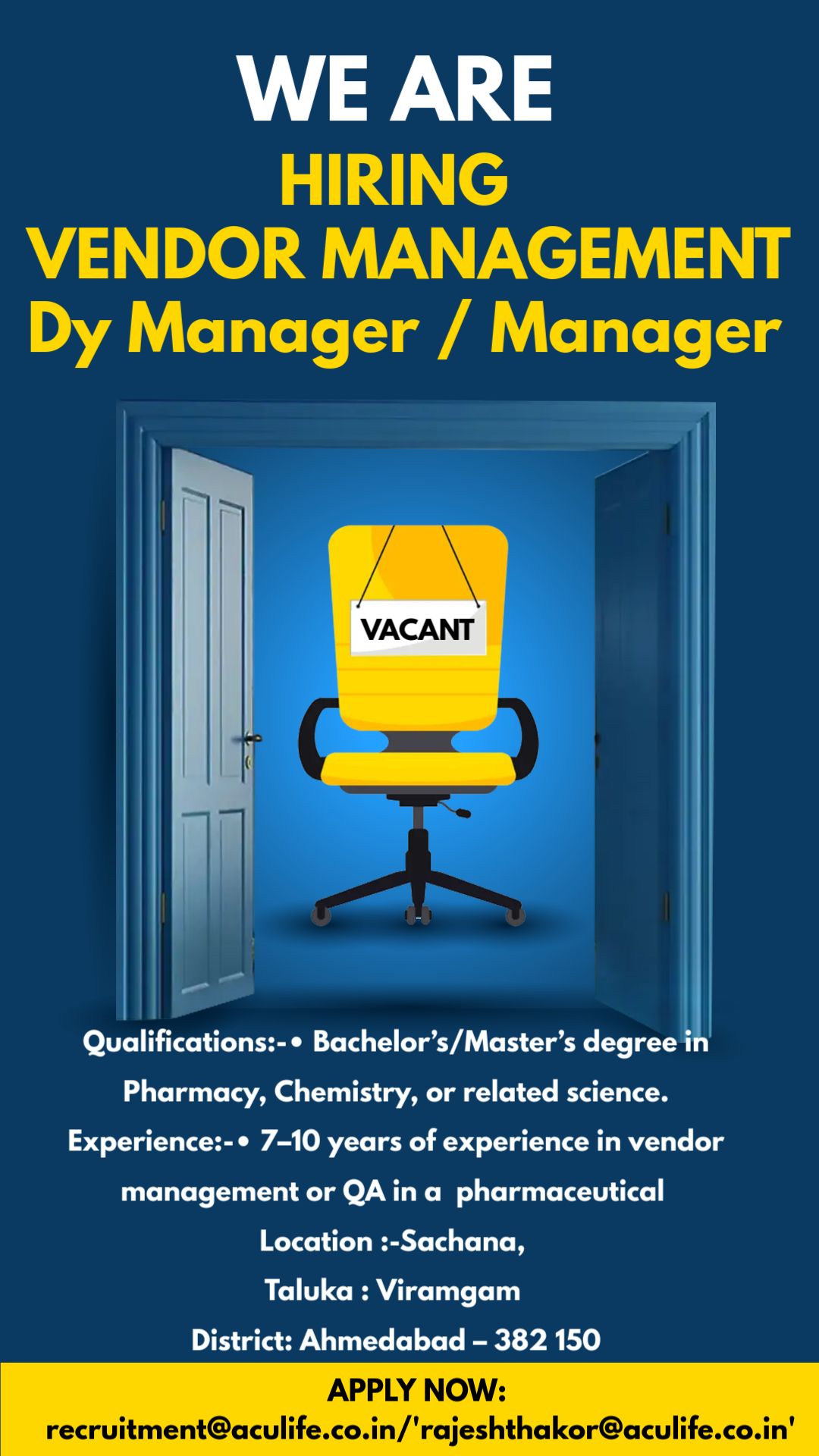 Aculife Healthcare Private Ltd We Are Locking For Vendor Management