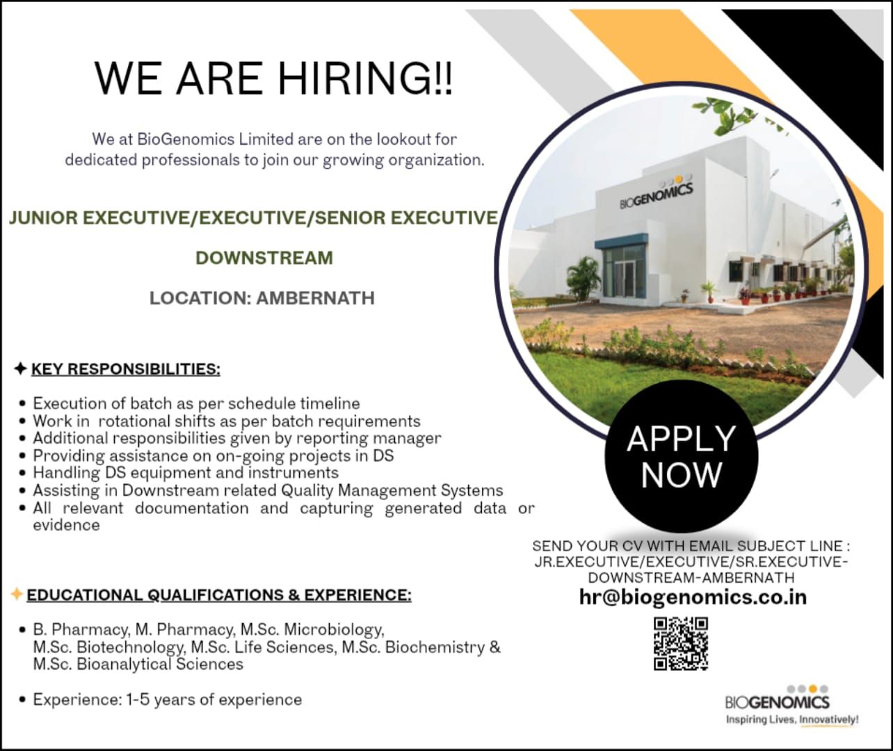 Biogenomics Ltd Hiring for Multiple Positions