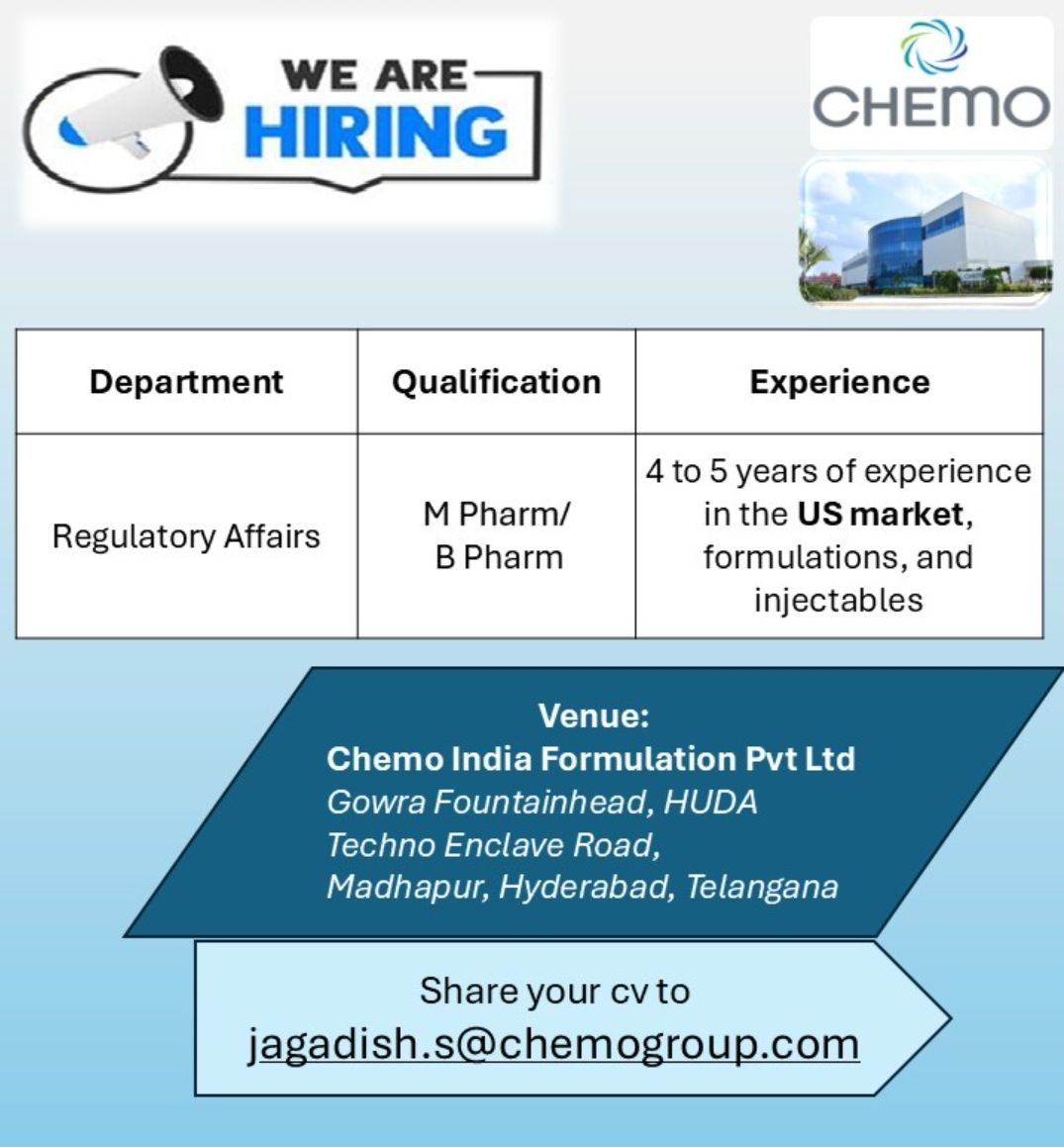 Post navigation Apisyn Hiring for QC,QC-Micro,Productiomn,Warehouse, PPMC/SCMGoklesh Lifesciences Hiring Bsc,Msc,Bpharm,Mpharm for QC,Production