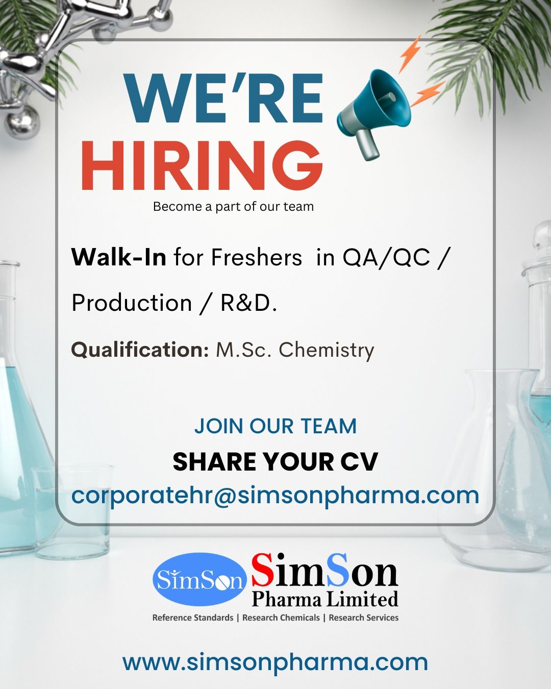 Freshers Hiring for QA,QC,R&D,Production At SimSon Pharma Limited