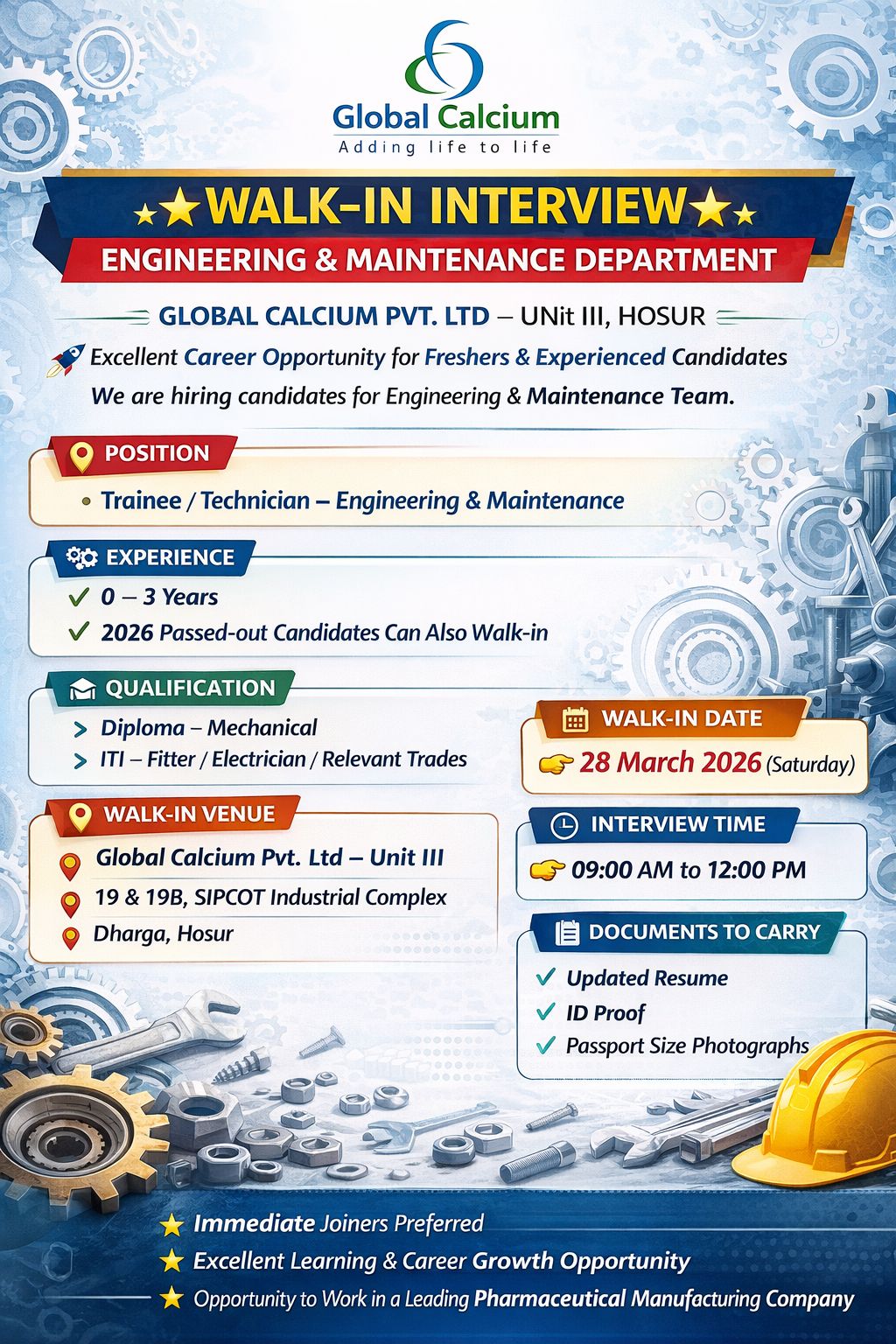 Post navigation Urgent Walk-in Freshers & Experience for QA,QC,Production,Warehouse,PPIC,R&D,HR,Accounts,Engineering,Maintenance,AGM,DGMBDR Pharma Hiring Bsc,Msc,Bpharm,Mpharm for IPQA