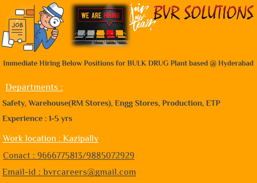Urgent Hiring for QC,Safety,Warehouse,Engg Store,Production,ETP, Logistics Head Openings