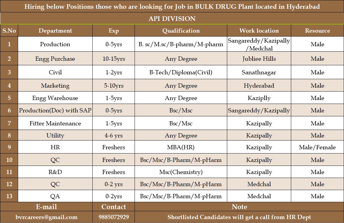 Urgent Hiring Freshers & Experience Bsc,msc,Bpharm,Mpharm,Any Degree,B.tech,Diploma,MBA for QA,QC,Production,HR,R&D,Civil,Engg Purchase,Engg Warehouse,maintenance,Utility