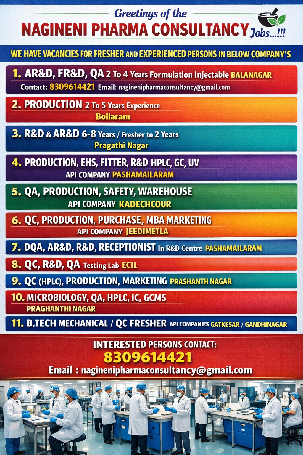 Greetings of the NAGINENI PHARMA CONSULTANCY Jobs…!!!