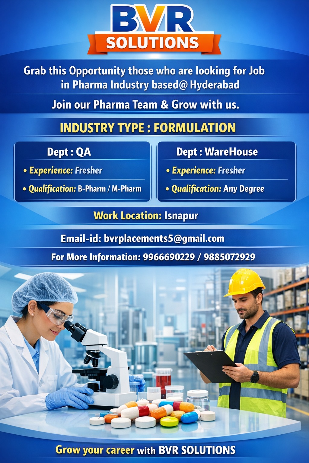 Post navigation Urgent Walk-in Drive Male & Female for QA,Production, Boiler OperatorCeph Lifesciences Walk-in On Monday to Saturday for Multiple openings In QA,QC,Production,Micro,store,Engineering,EHS