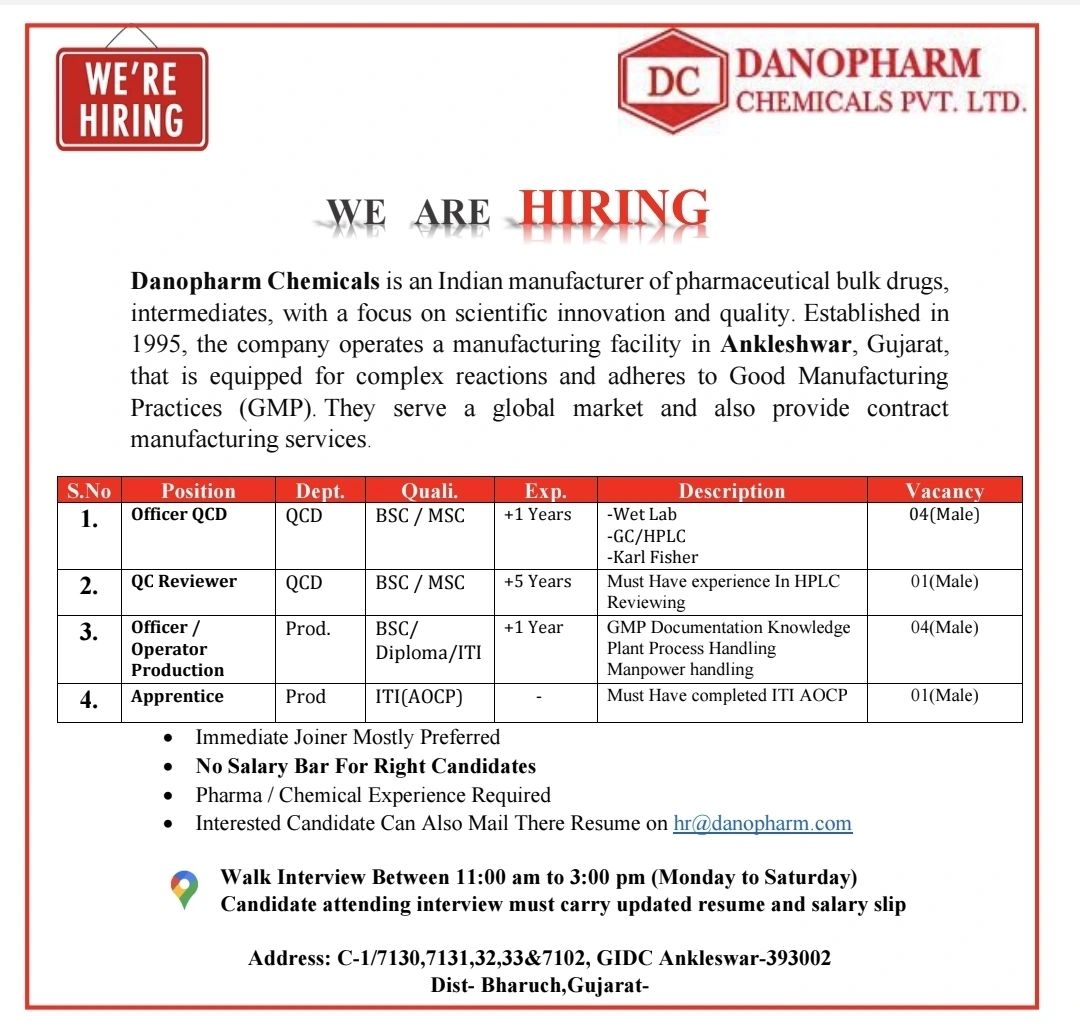 Can also attend Walk interview between Mon to Sat between 11:00am to 3:00 pm