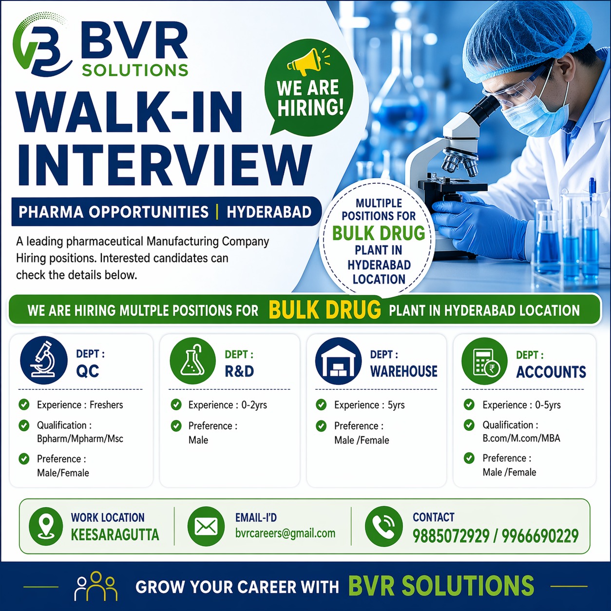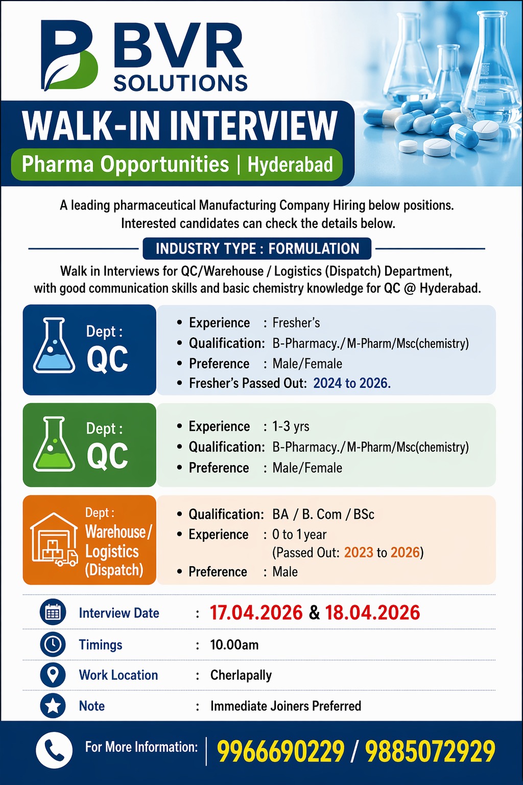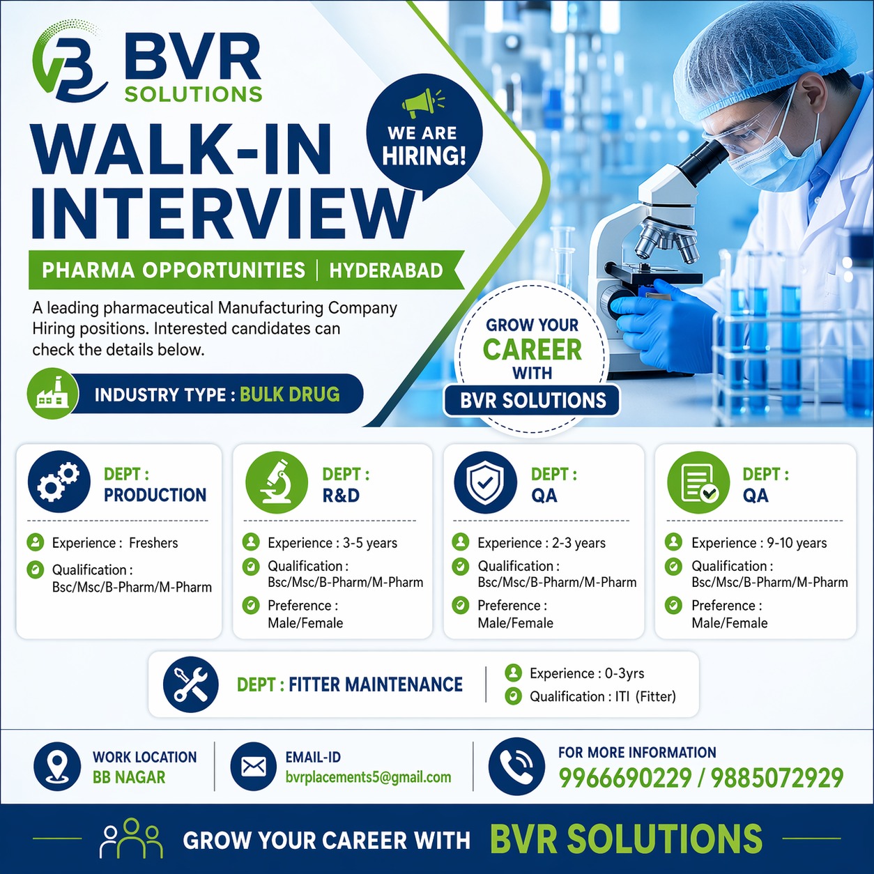 Post navigation Free Placement Freshers & experience for QC,Production, R&D,Maintenance,ARD,Packing,FRD,HR,AdminFreshers & Experience Urgent Recruitment for QA,QC,FR&D,RA,Production,Pharmacovigilance/Warehouse/Logistics